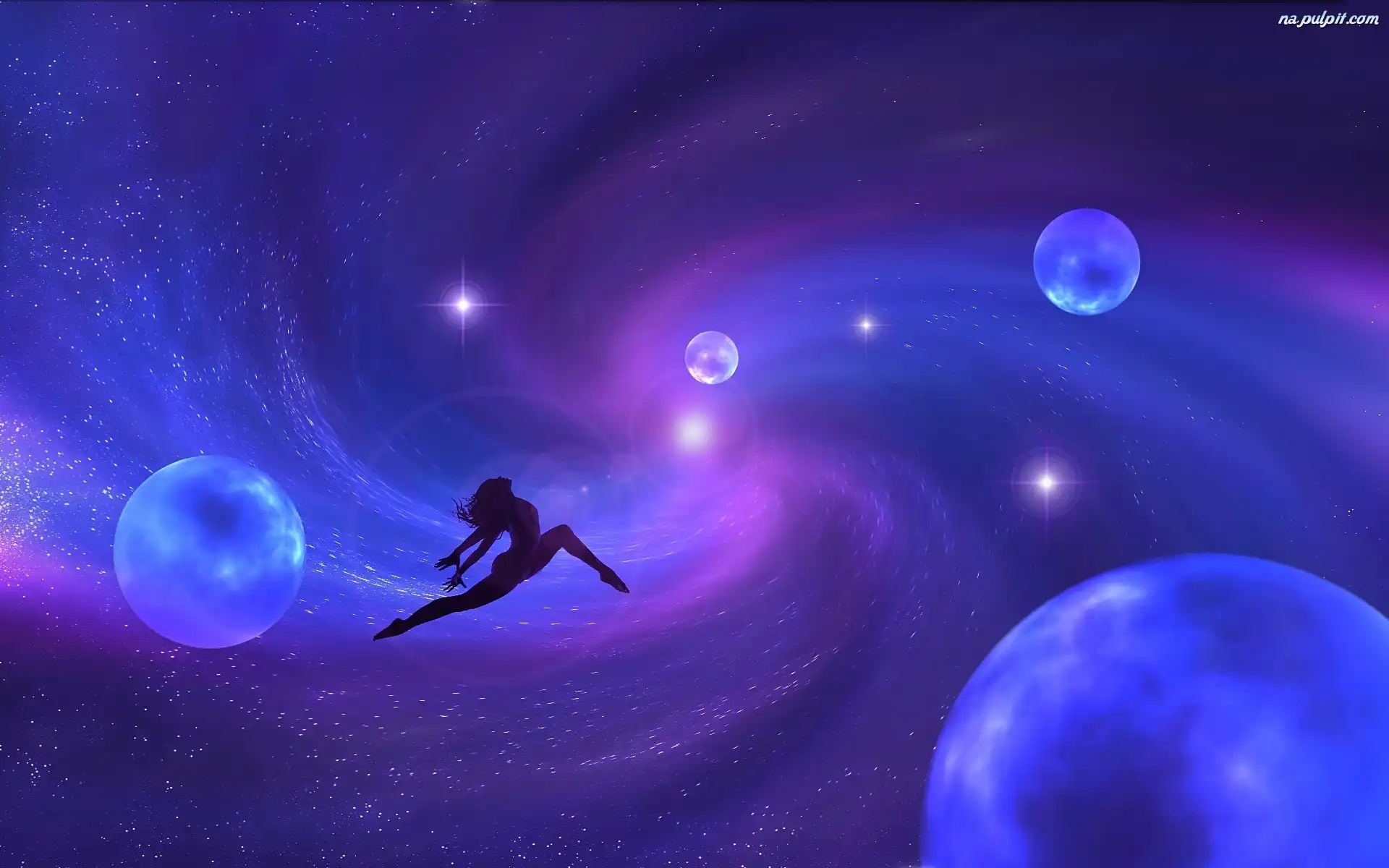 Grafika, Kosmos, Kobieta, Planety