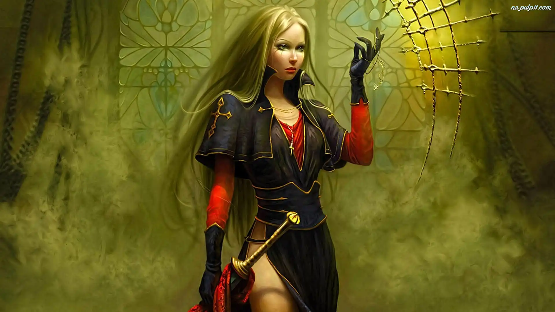 Grafika, Kostium, Kobieta, Miecz Na Pulpit