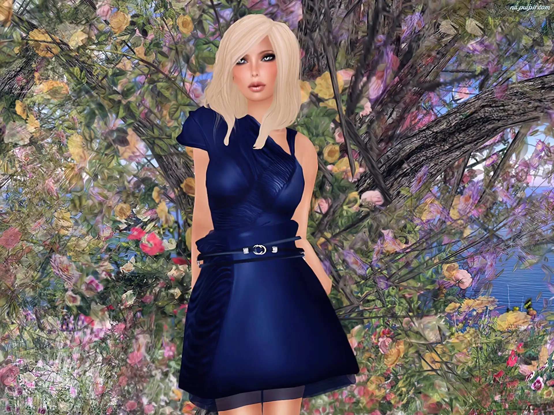 Grafika, Ogród, Kobieta, Kwiaty