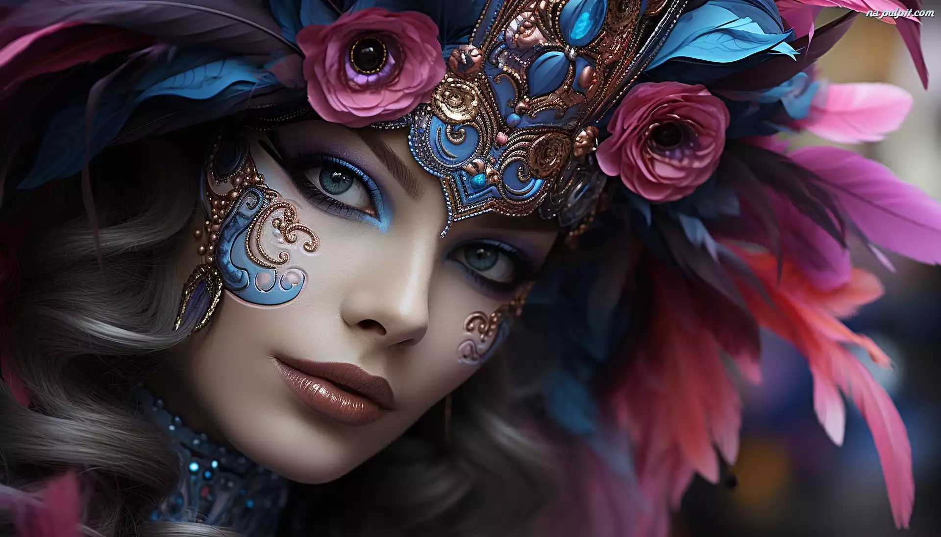 Kobieta, Kwiaty, Pióropusz, Grafika Na Pulpit
