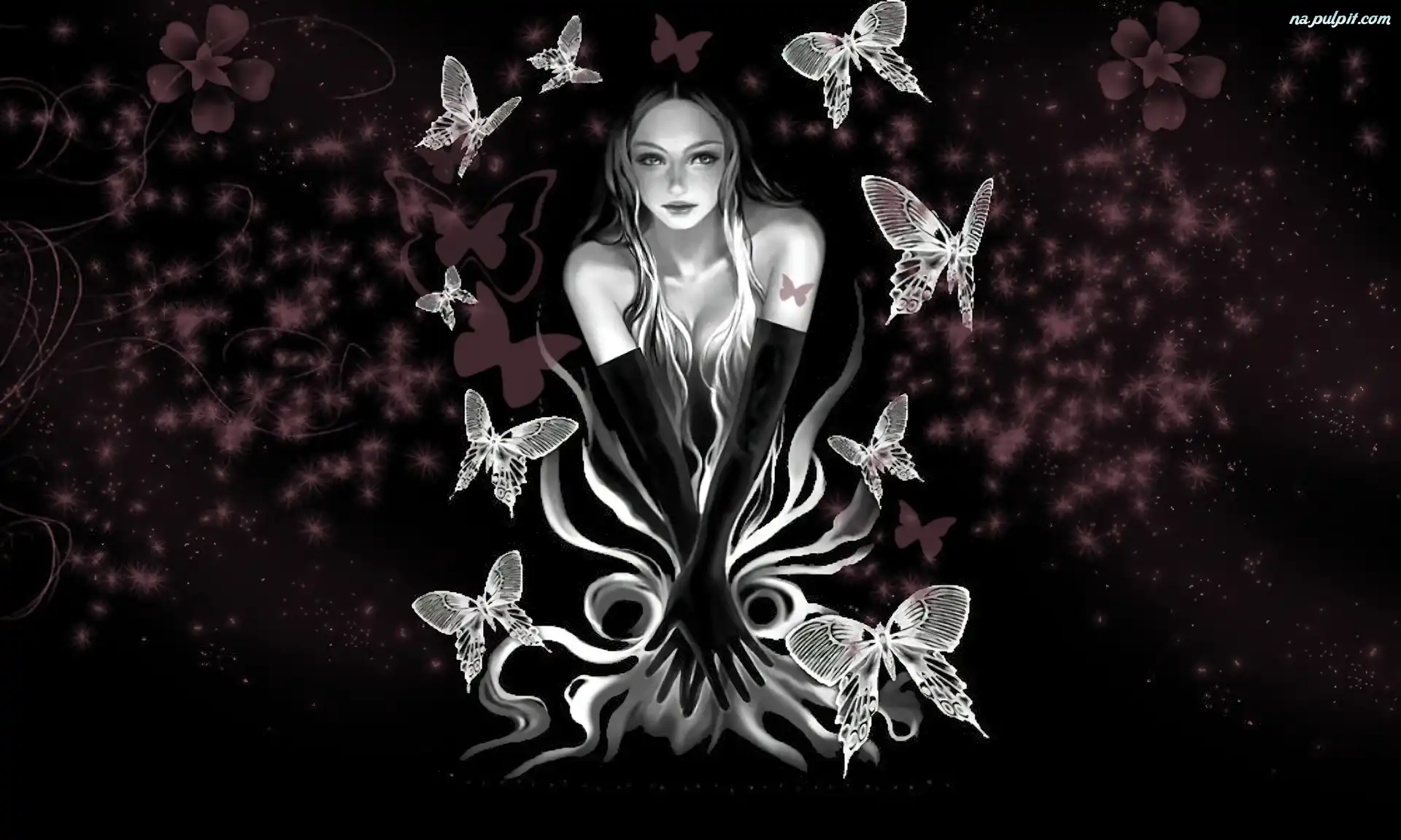 Grafika, Rękawiczki, Kobieta, Motyle Na Pulpit