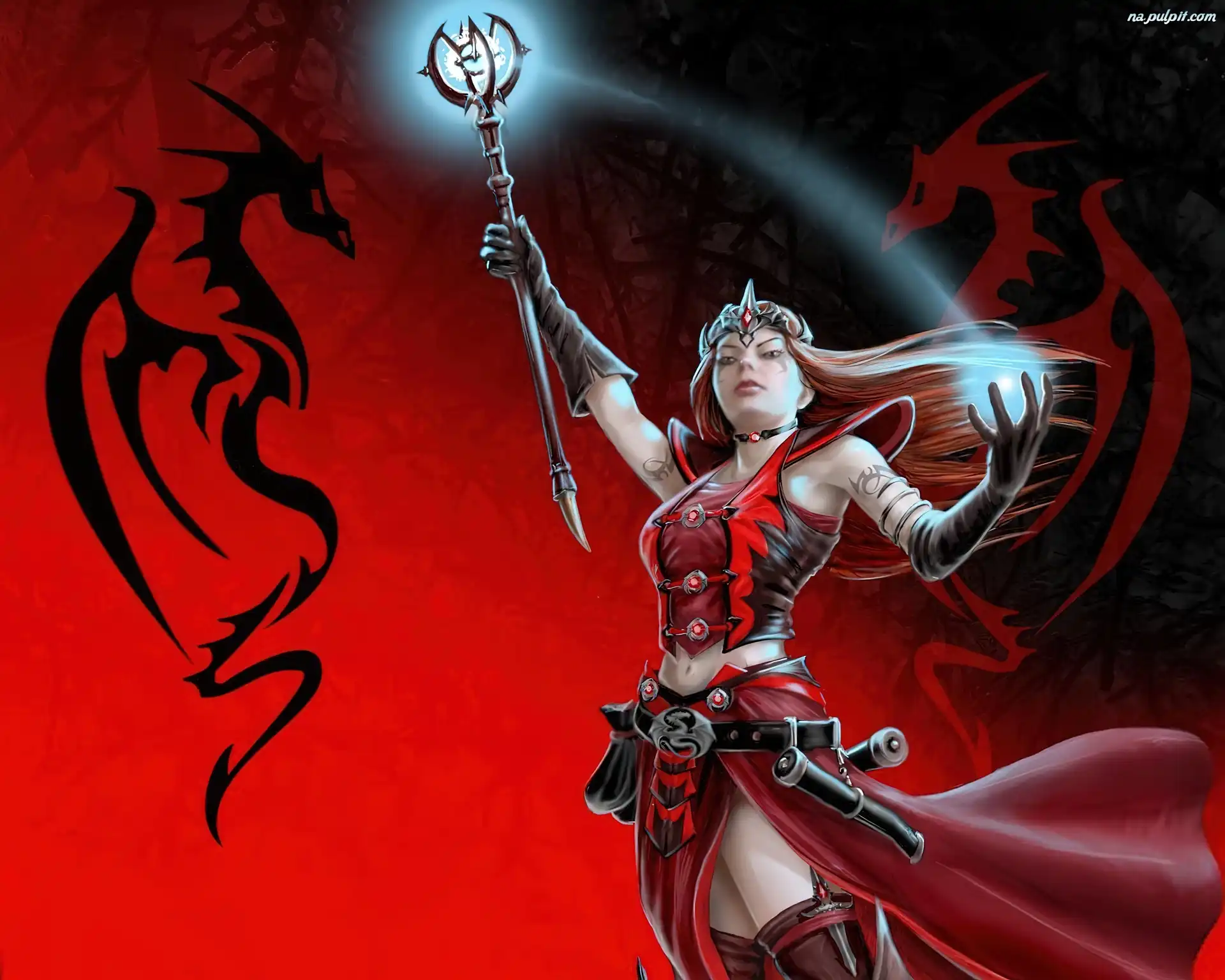 Grafika, Smoki, Kobieta, Światło Na Pulpit