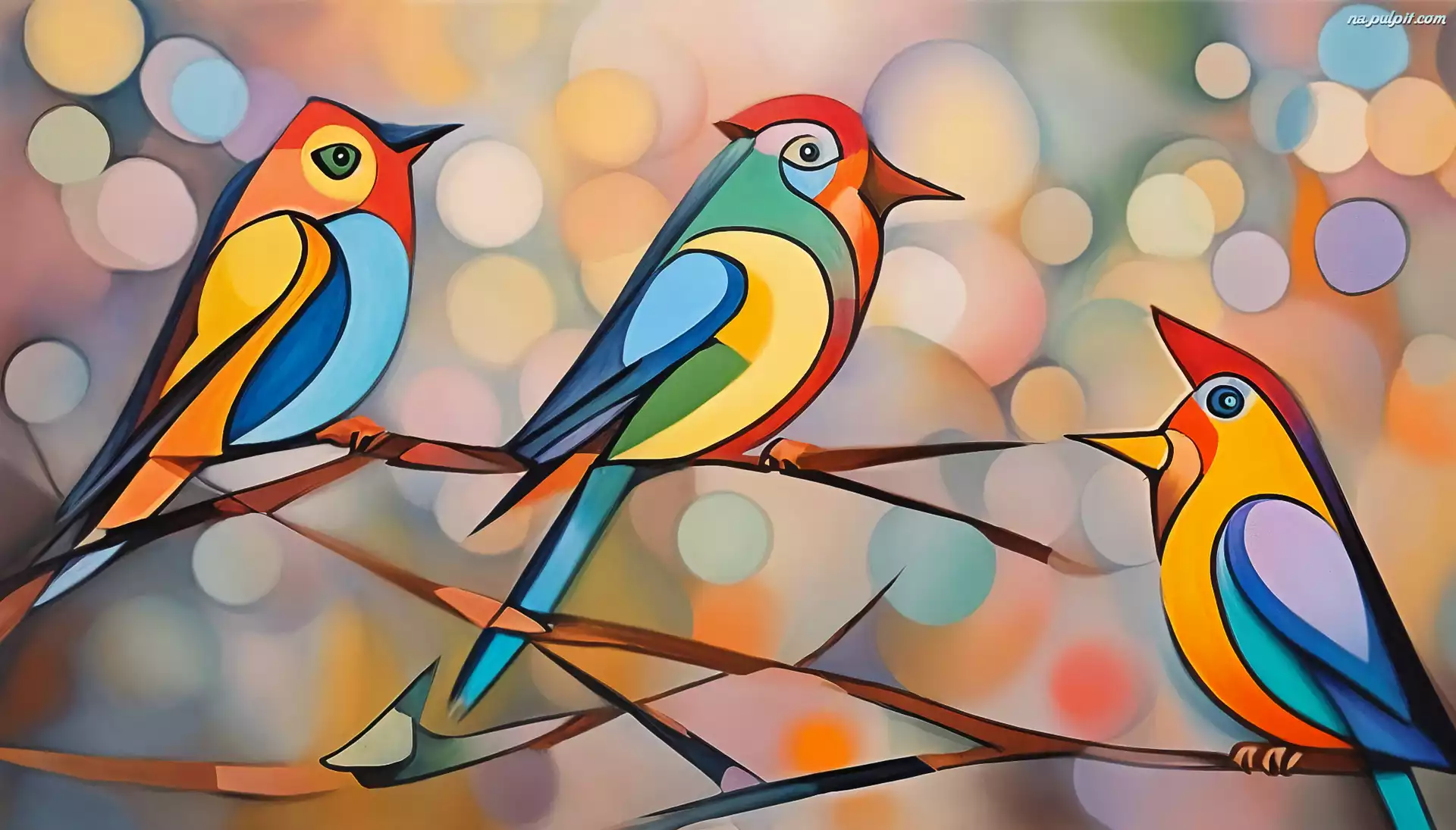Kolorowe, Ptaki, Gałązki, Grafika Na Pulpit