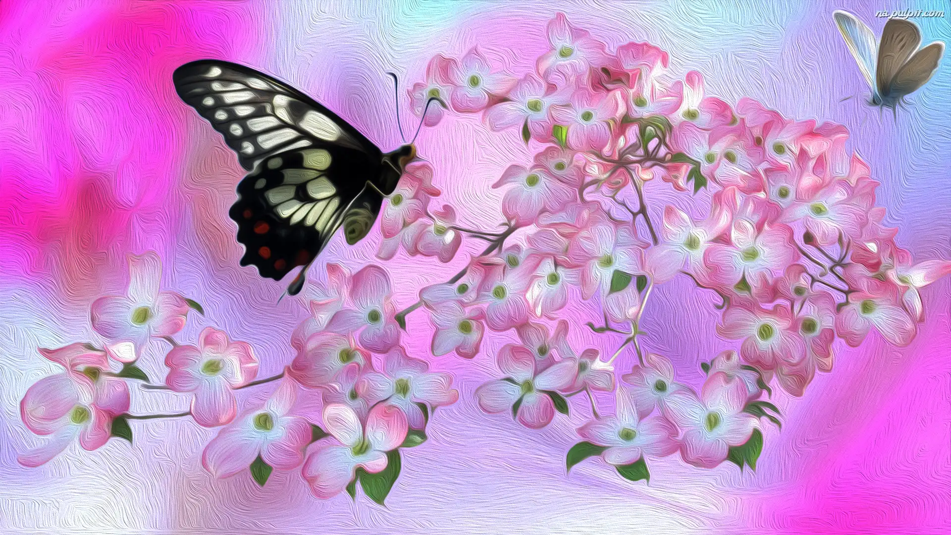 Grafika, Motyle, Kwiaty, Kolorowe tło Na Pulpit