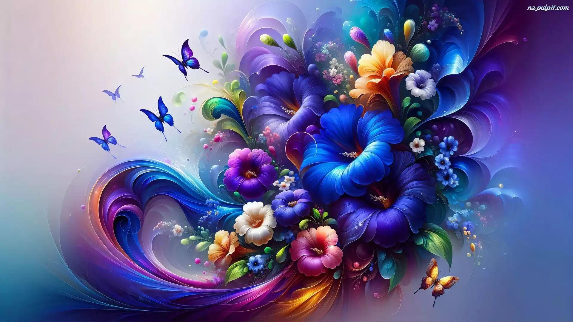 Kwiaty, Grafika, Kolorowe, Motyle, Niebieskie Na Pulpit