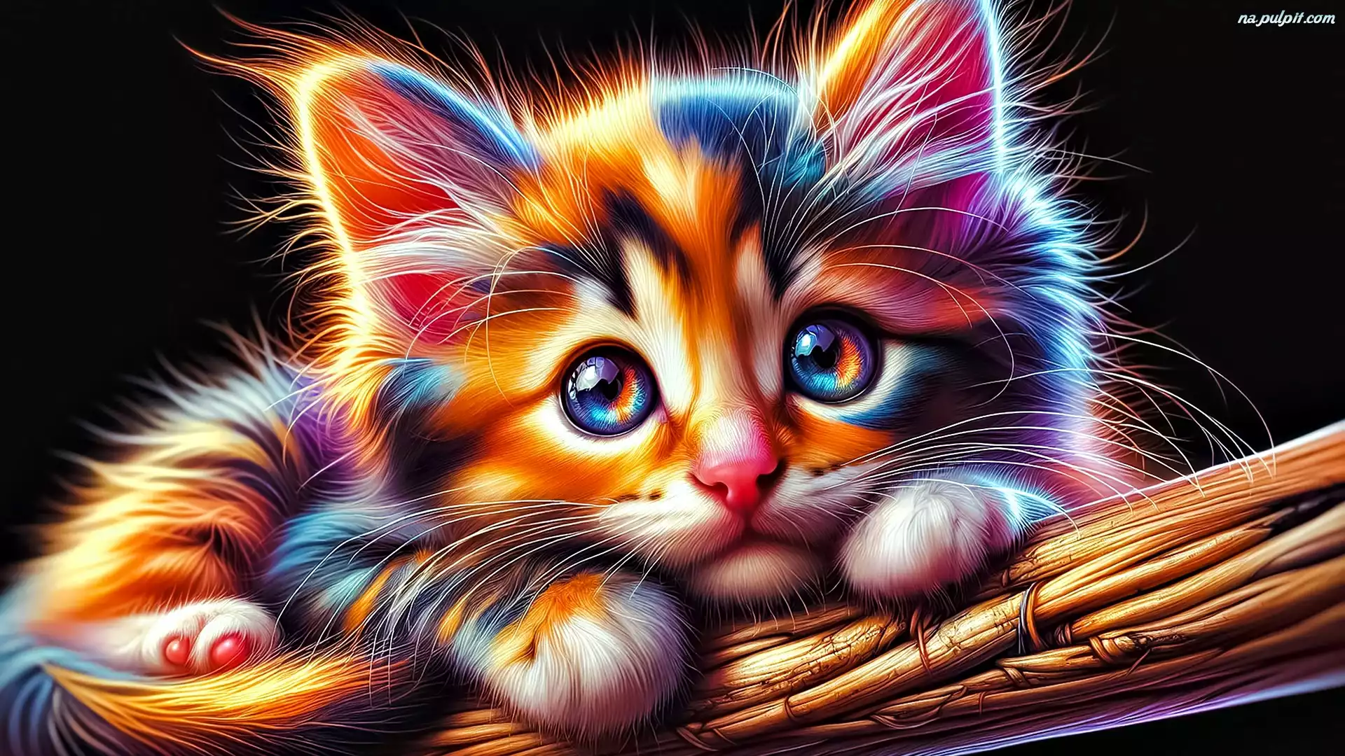 Kolorowy, Kot, Sierść, Grafika Na Pulpit
