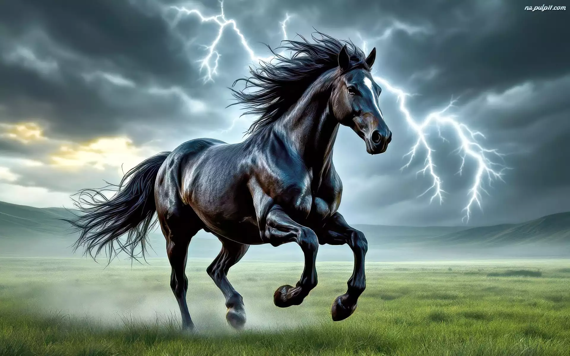 Koń, Czarny, Błyskawice, Grafika Na Pulpit