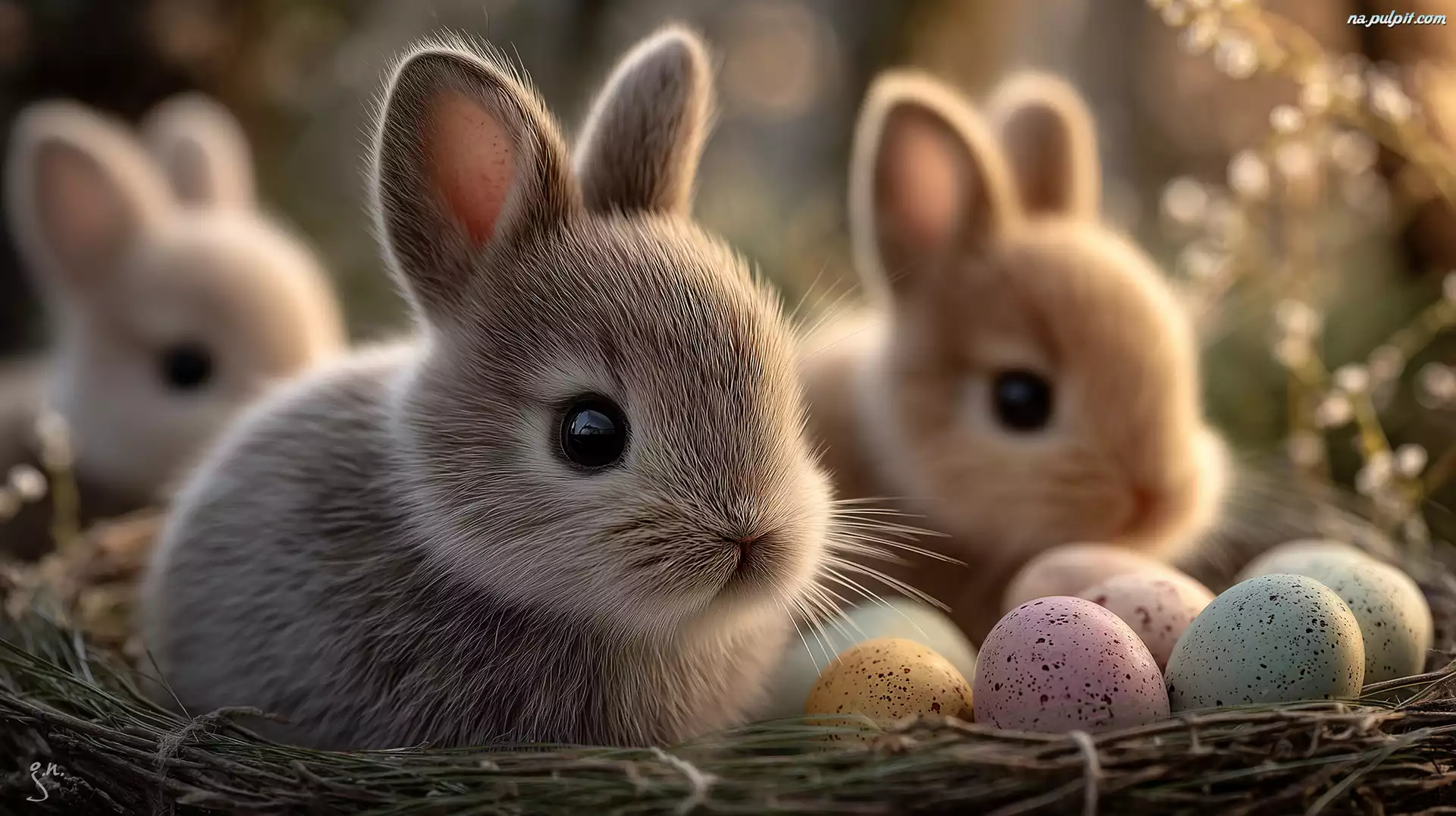 Wielkanoc, Króliki, Pisanki, Grafika AI, Koszyk Na Pulpit