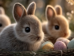 Wielkanoc, Króliki, Pisanki, Grafika AI, Koszyk