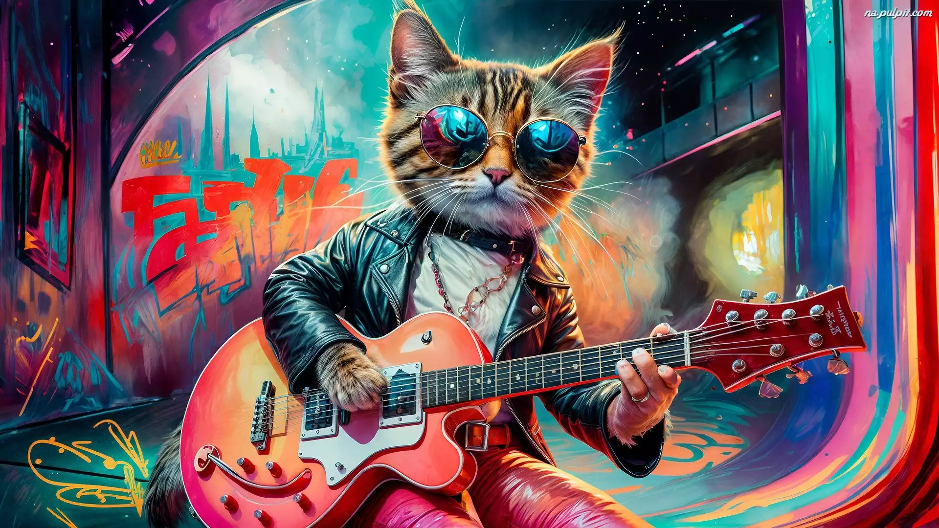 Kot, Okulary, Gitara, Grafika Na Pulpit