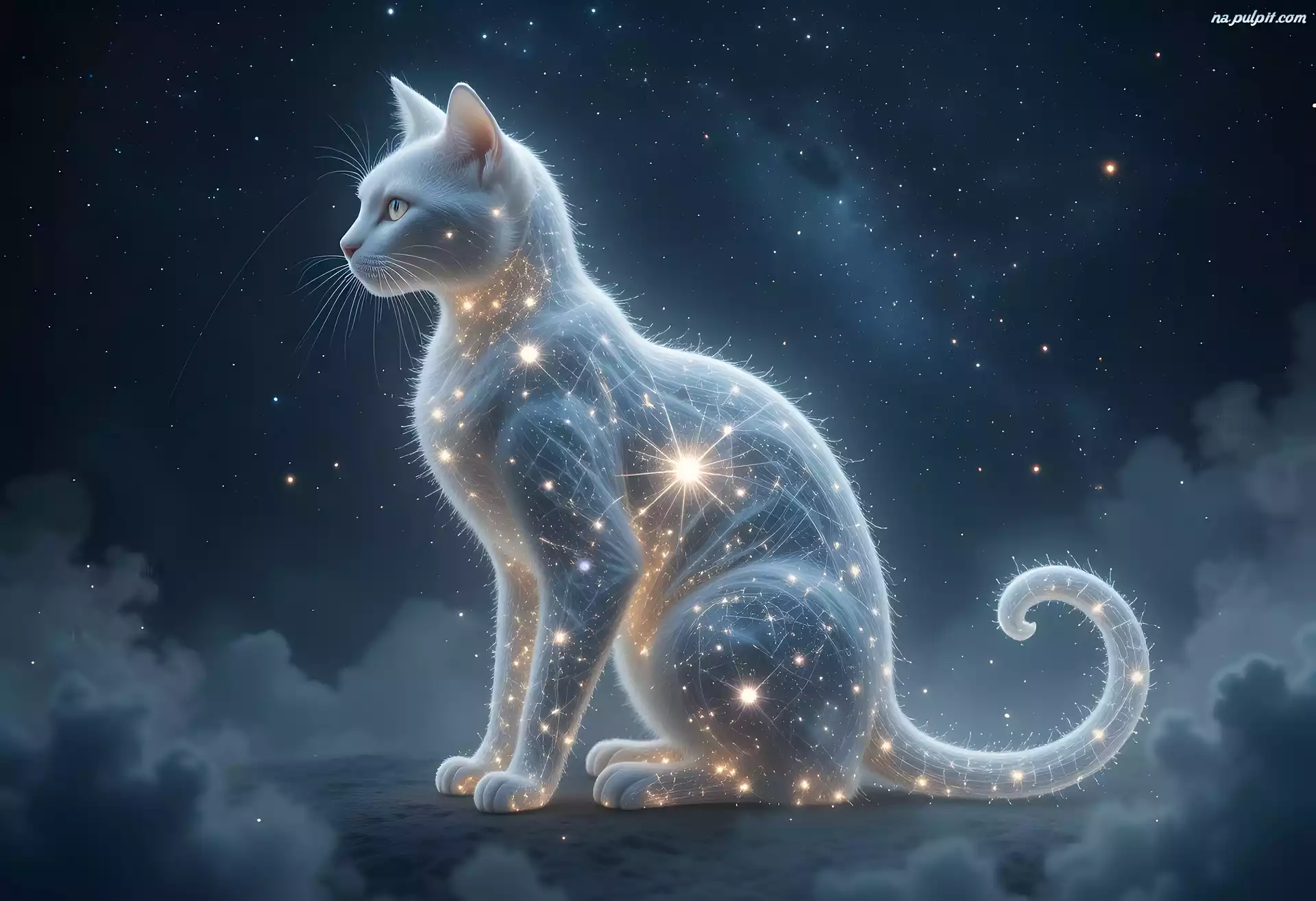 Kot, Noc, Gwiazdy, Grafika Na Pulpit