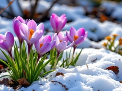 Åšnieg, Kwiaty, Fioletowe, Grafika AI, Krokusy