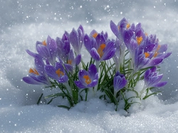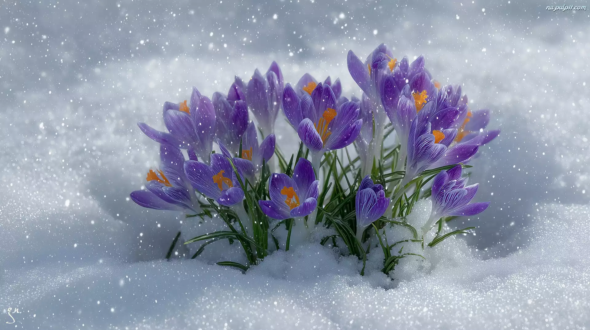 Åšnieg, RozkwitajÄ…ce, Fioletowe, Grafika AI, Krokusy Na Pulpit