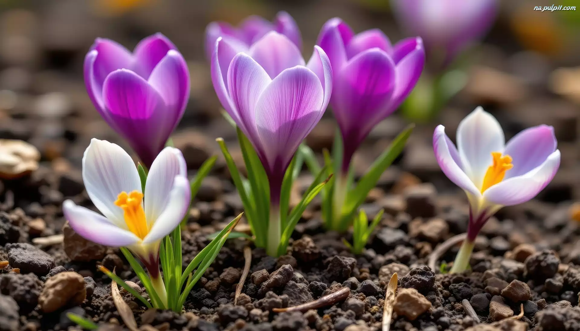 Listki, Kwiaty, Kolorowe, Grafika AI, Krokusy Na Pulpit