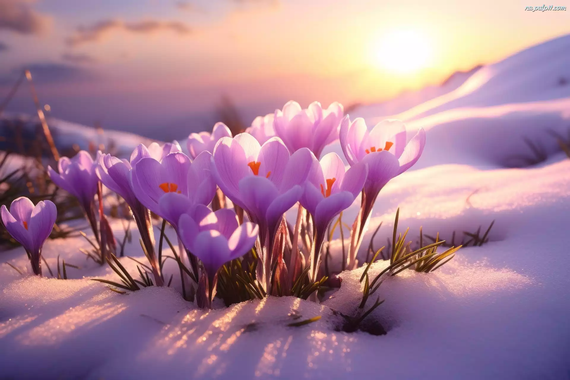 Krokusy, Zima, Åšnieg, Grafika Na Pulpit