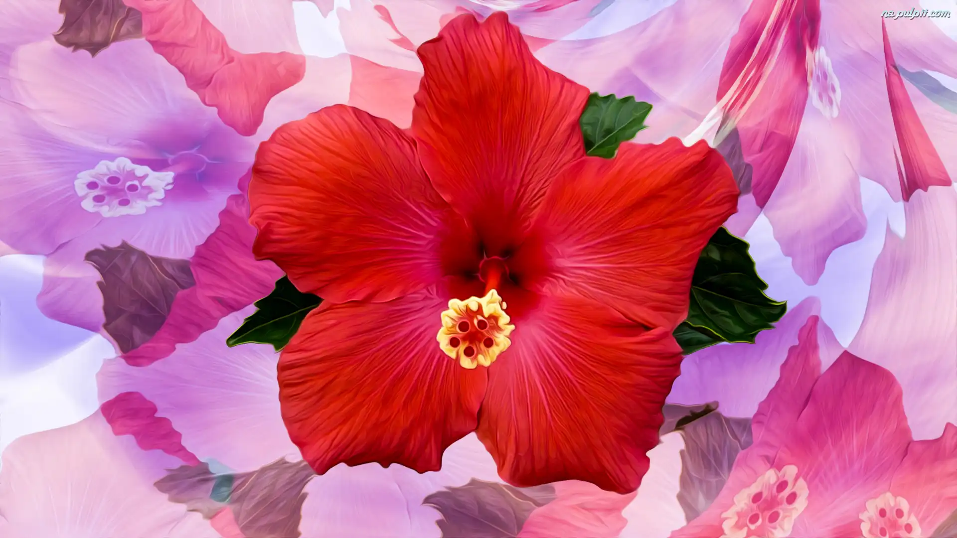 Grafika, Hibiskus, Kwiat, Czerwony Na Pulpit
