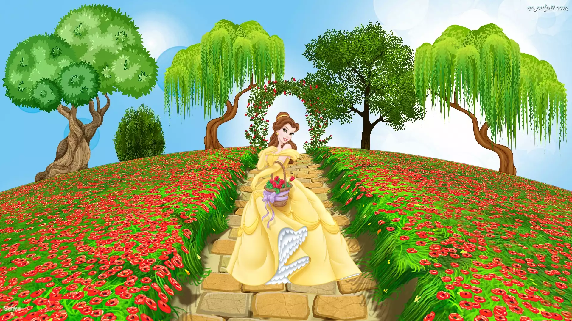 Kwiaty, Grafika, Dla dzieci, Drzewa, Ogród, Bella Na Pulpit