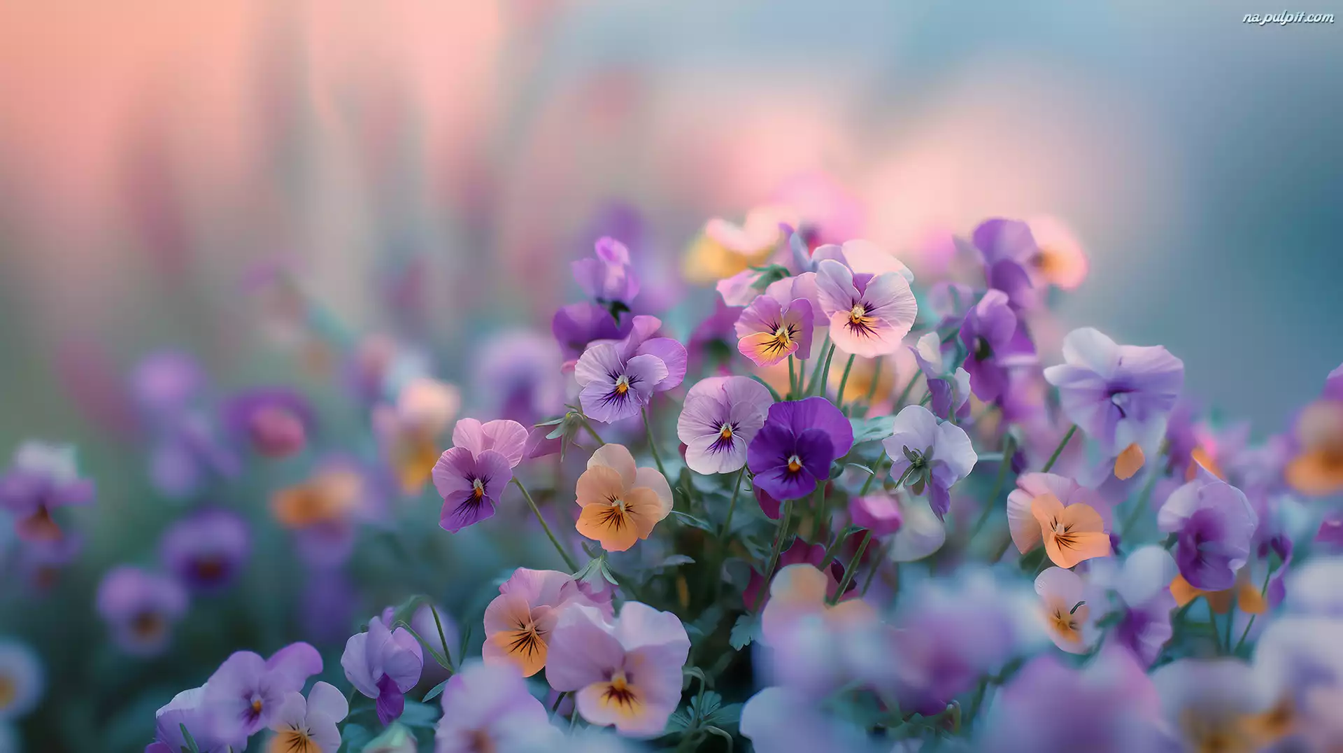 Kępka, Kolorowe, Bratki, Grafika AI, Kwiaty Na Pulpit