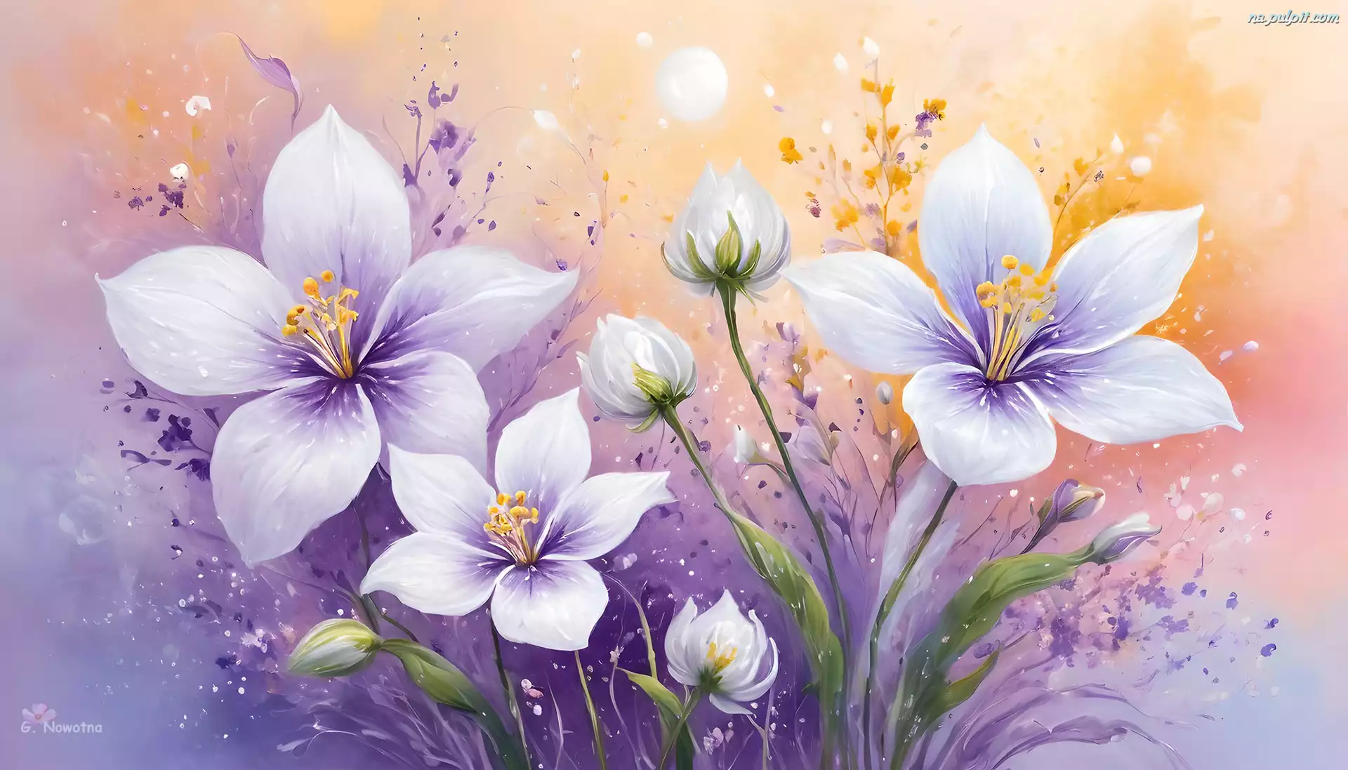 Kwiaty, Biało-fioletowe, Grafika Na Pulpit