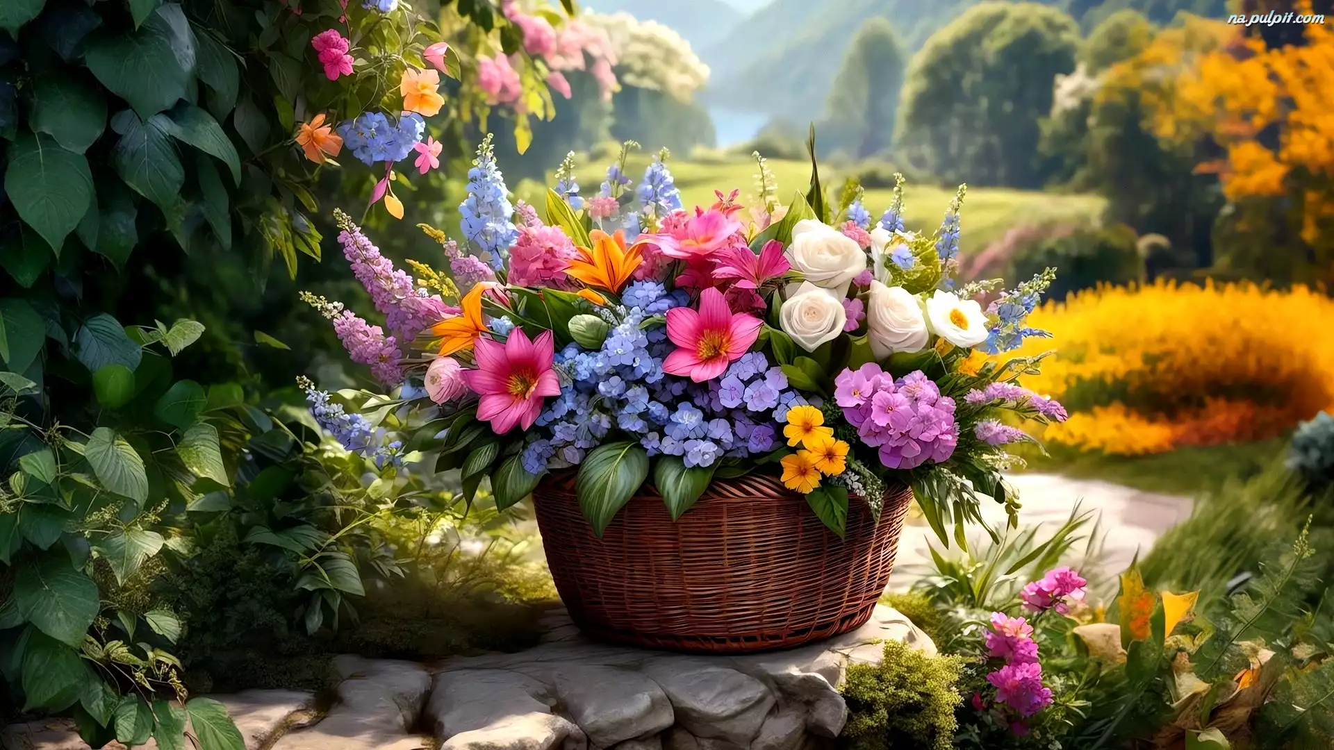 Kwiaty, Bukiet, Koszyk, Grafika Na Pulpit