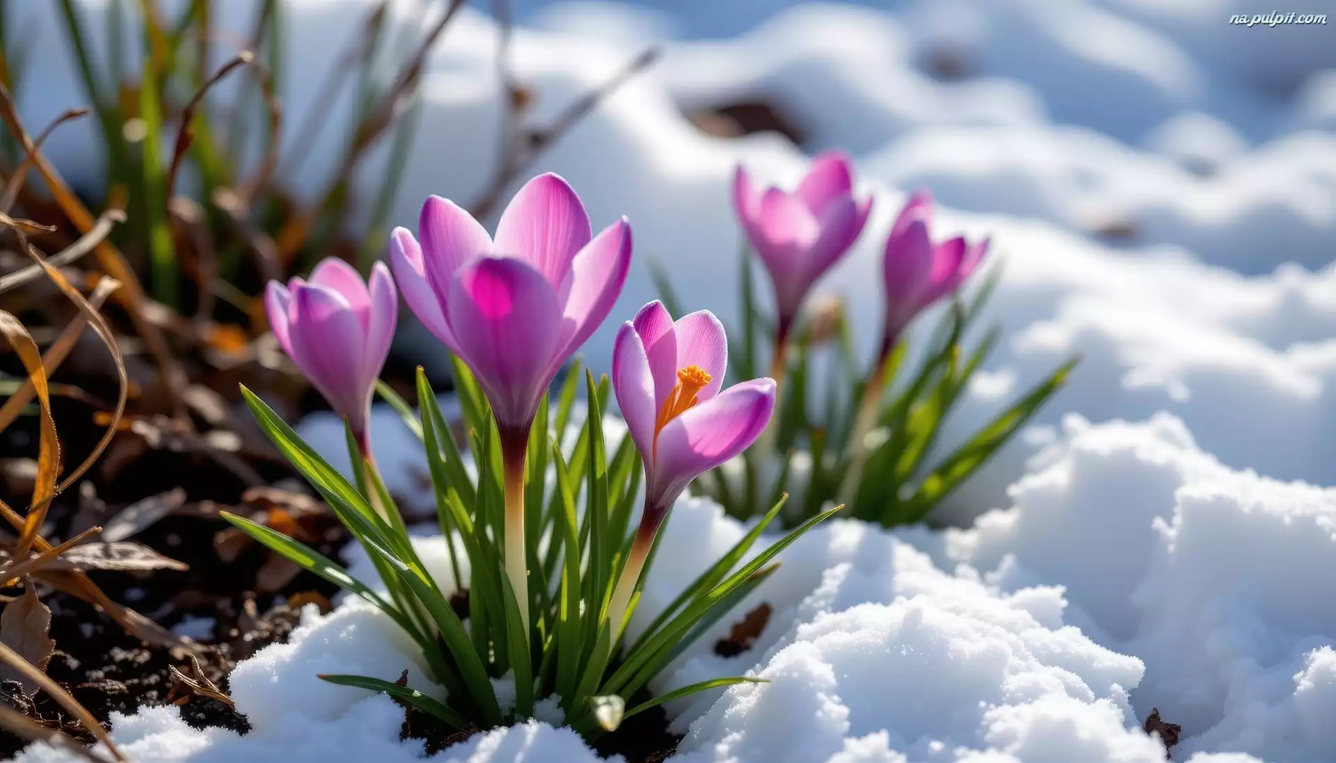 Åšnieg, Fioletowe, Krokusy, Grafika AI, Kwiaty Na Pulpit