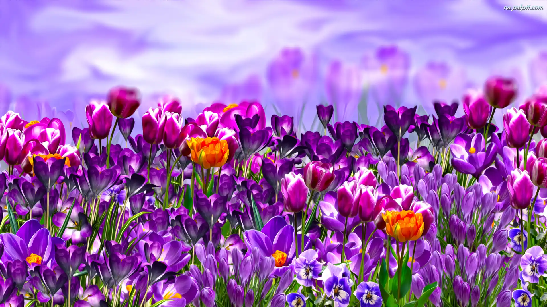 Grafika, Tulipany, Krokusy, Kwiaty, Bratki