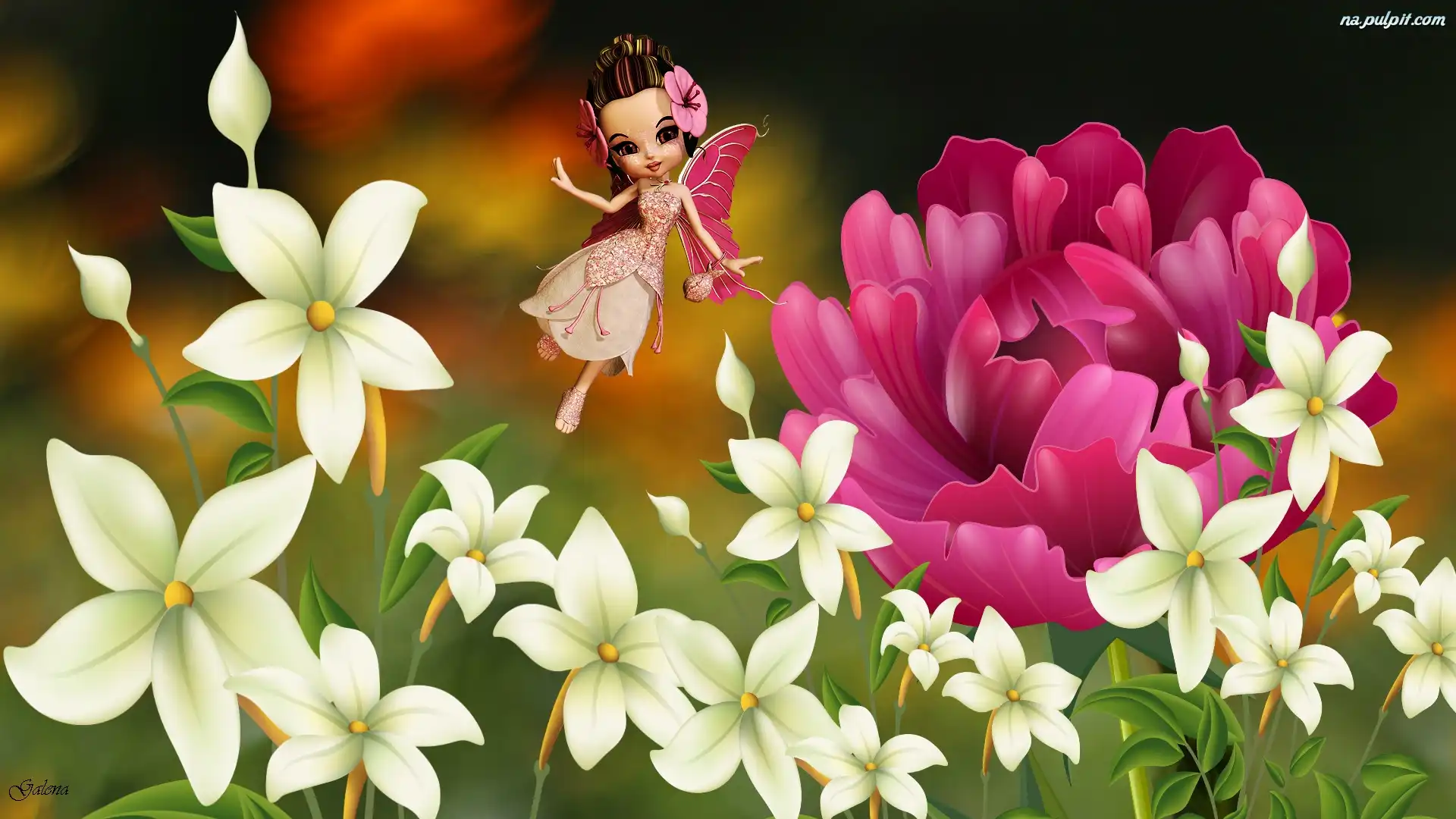 Grafika, Laleczka, Kwiaty, Wróżka Na Pulpit