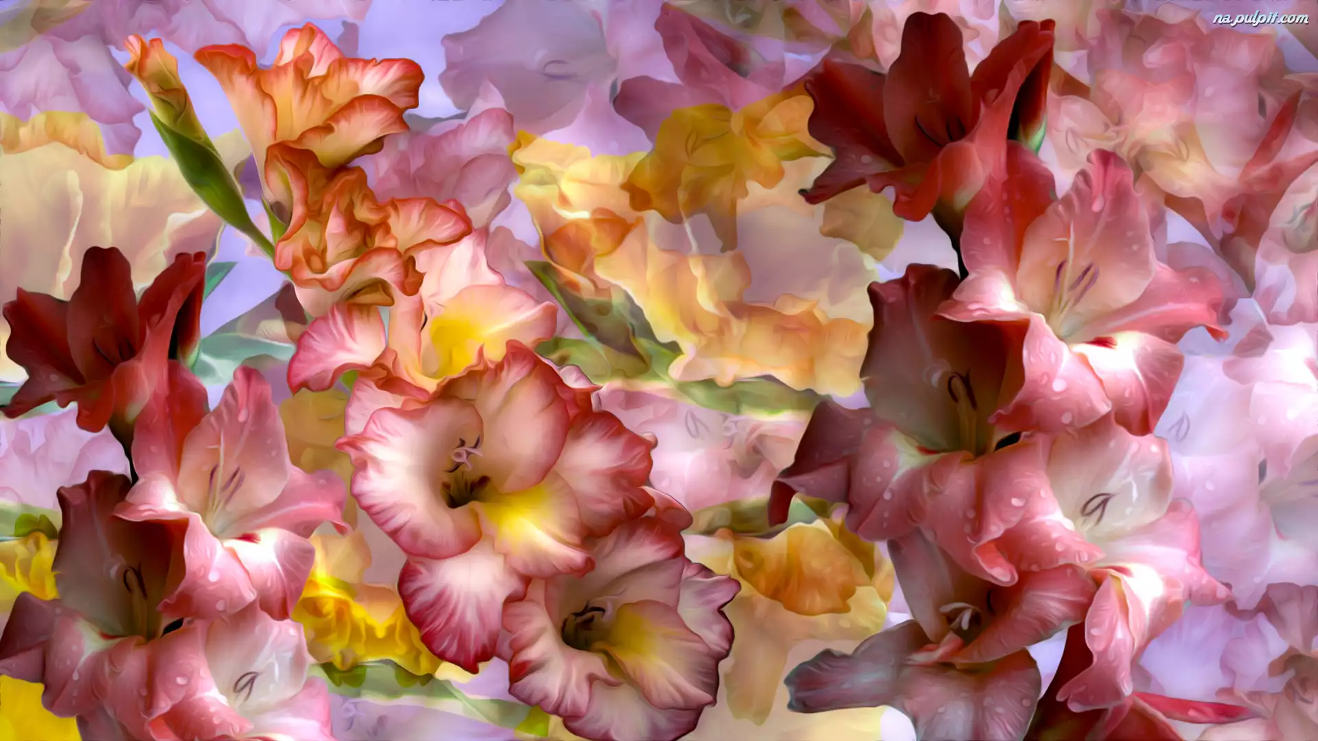 Grafika, Mieczyki, Kwiaty, Gladiole