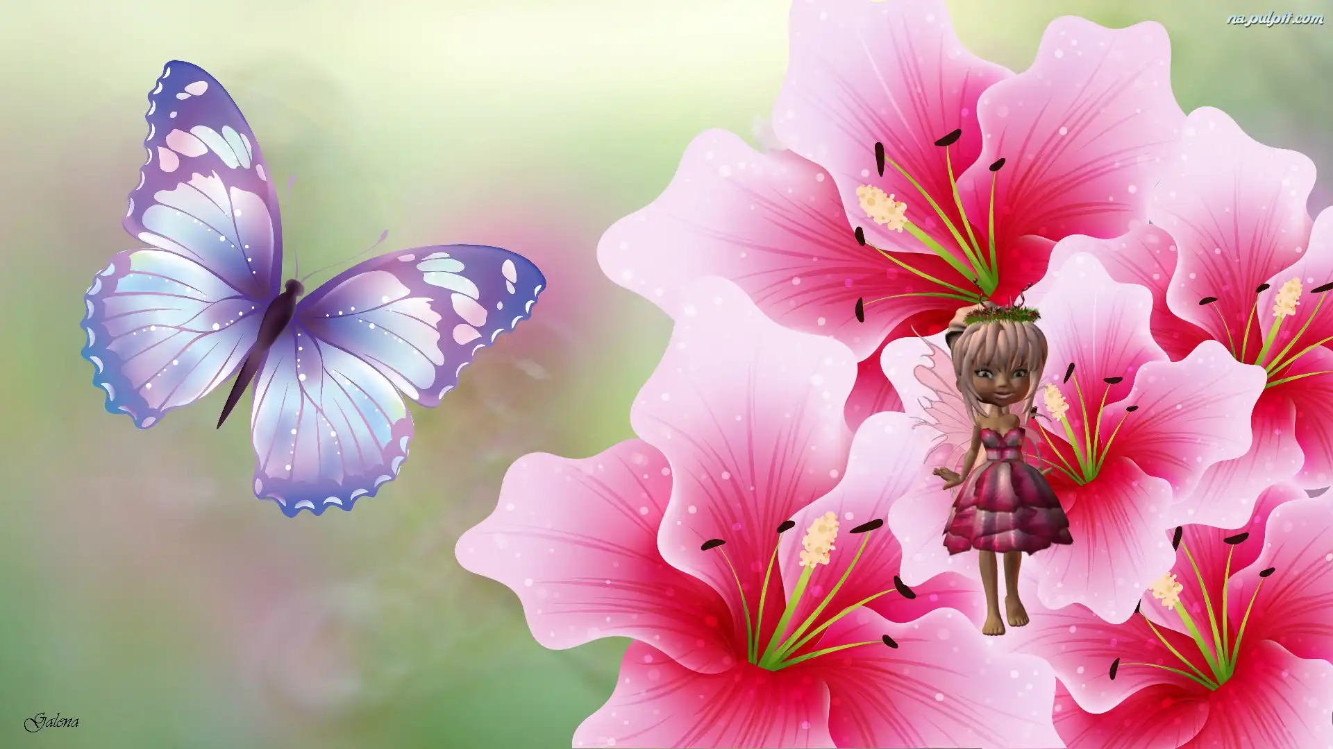 Grafika, Motyl, Kwiaty, Laleczka Na Pulpit
