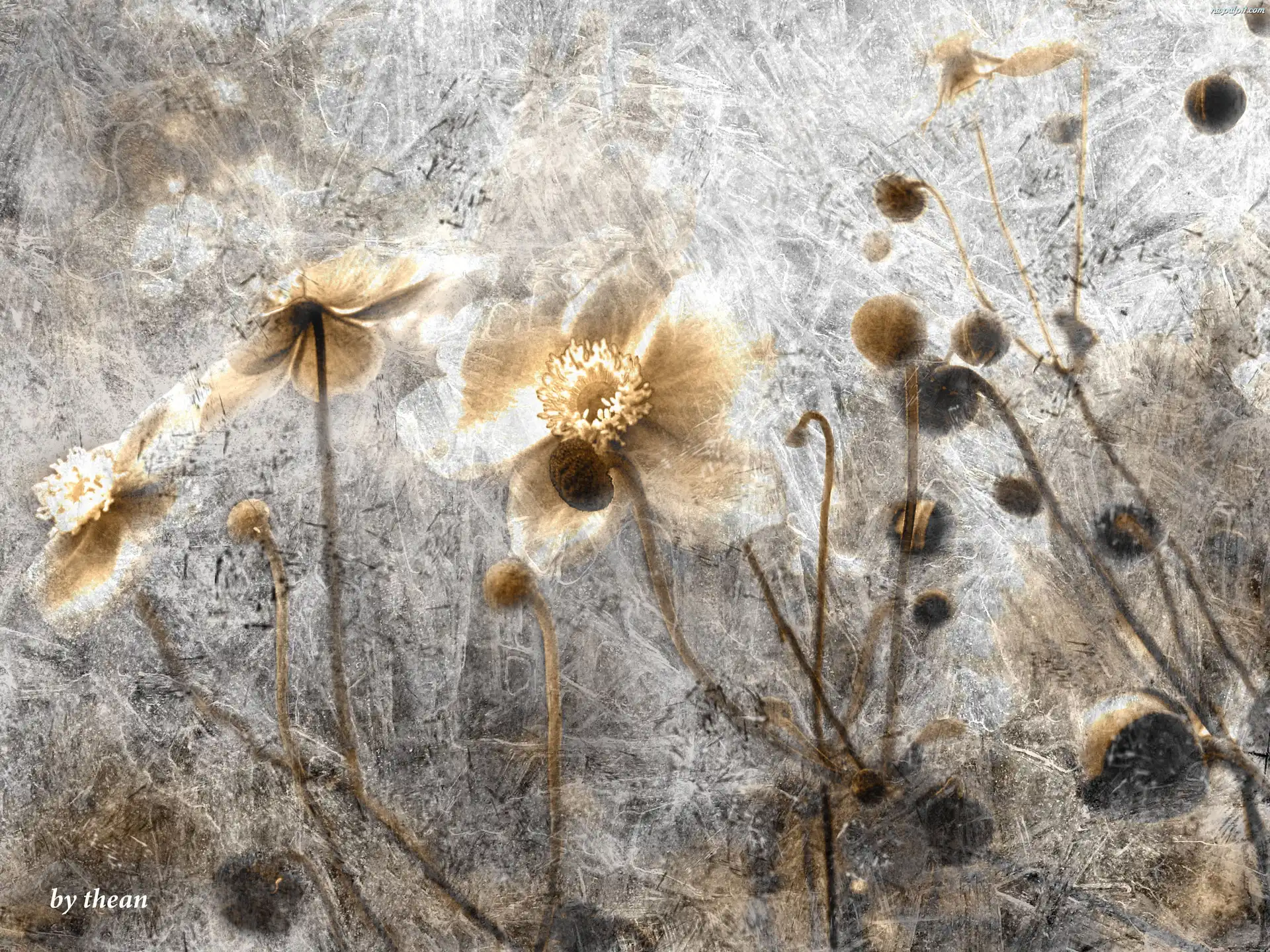 Grafika, Odcienie, Kwiaty, Brązu