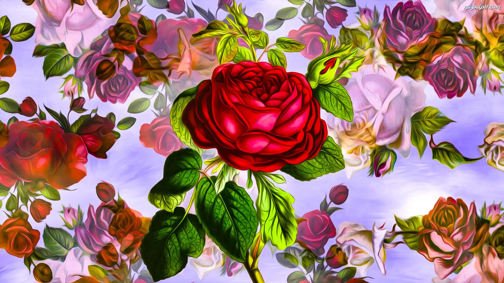 Grafika, Kwieciste, Róże, Kwiaty, Tło Na Pulpit