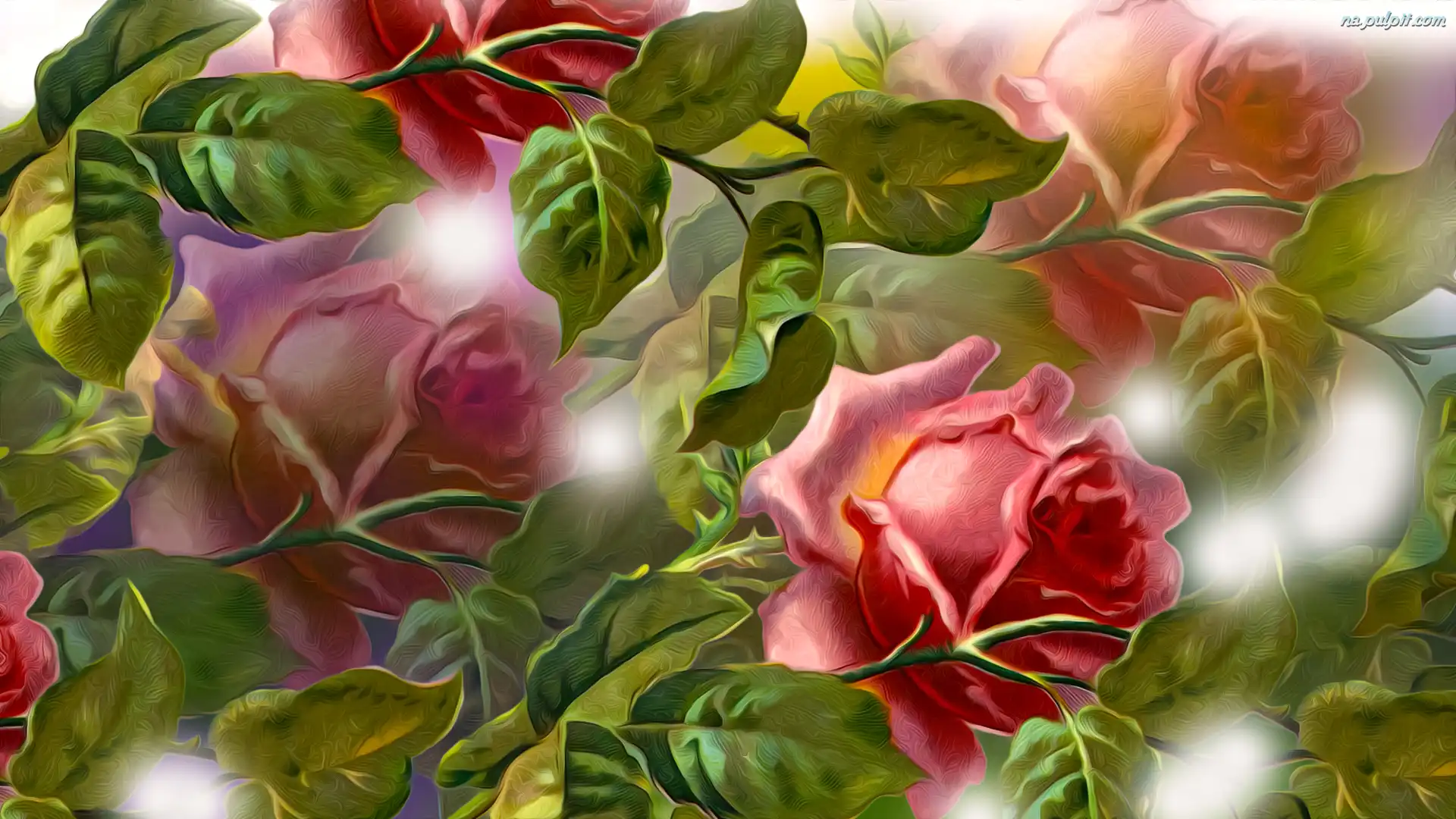 Grafika, Róże, Kwiaty, Listki