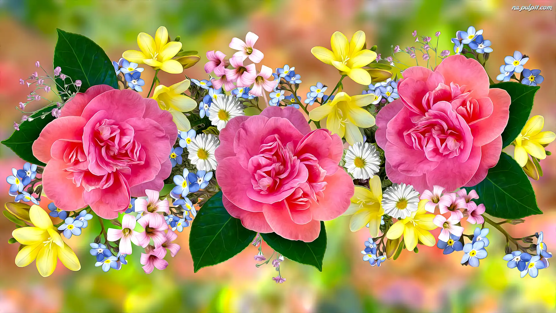 Grafika, Różowe, Trzy, Kwiaty, Róże Na Pulpit
