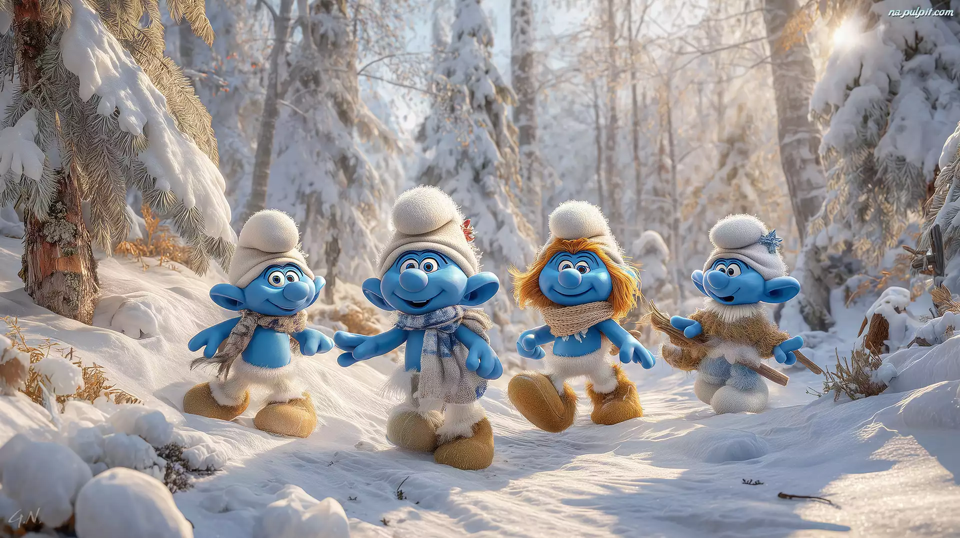 Zima, Cztery, Smerfy, Grafika AI, Las Na Pulpit