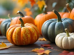 Deski, Kolorowe, Dynie, Grafika AI, Liście