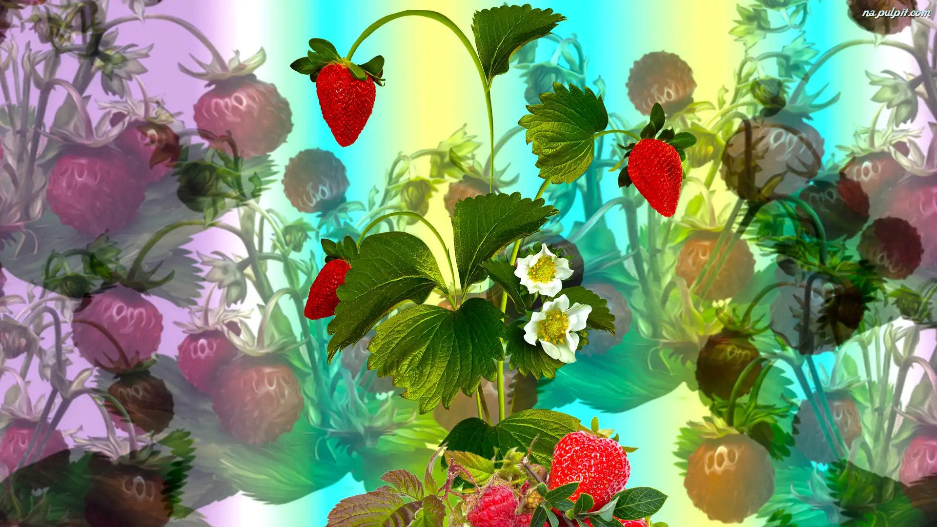 Liście, Grafika, Truskawki Na Pulpit