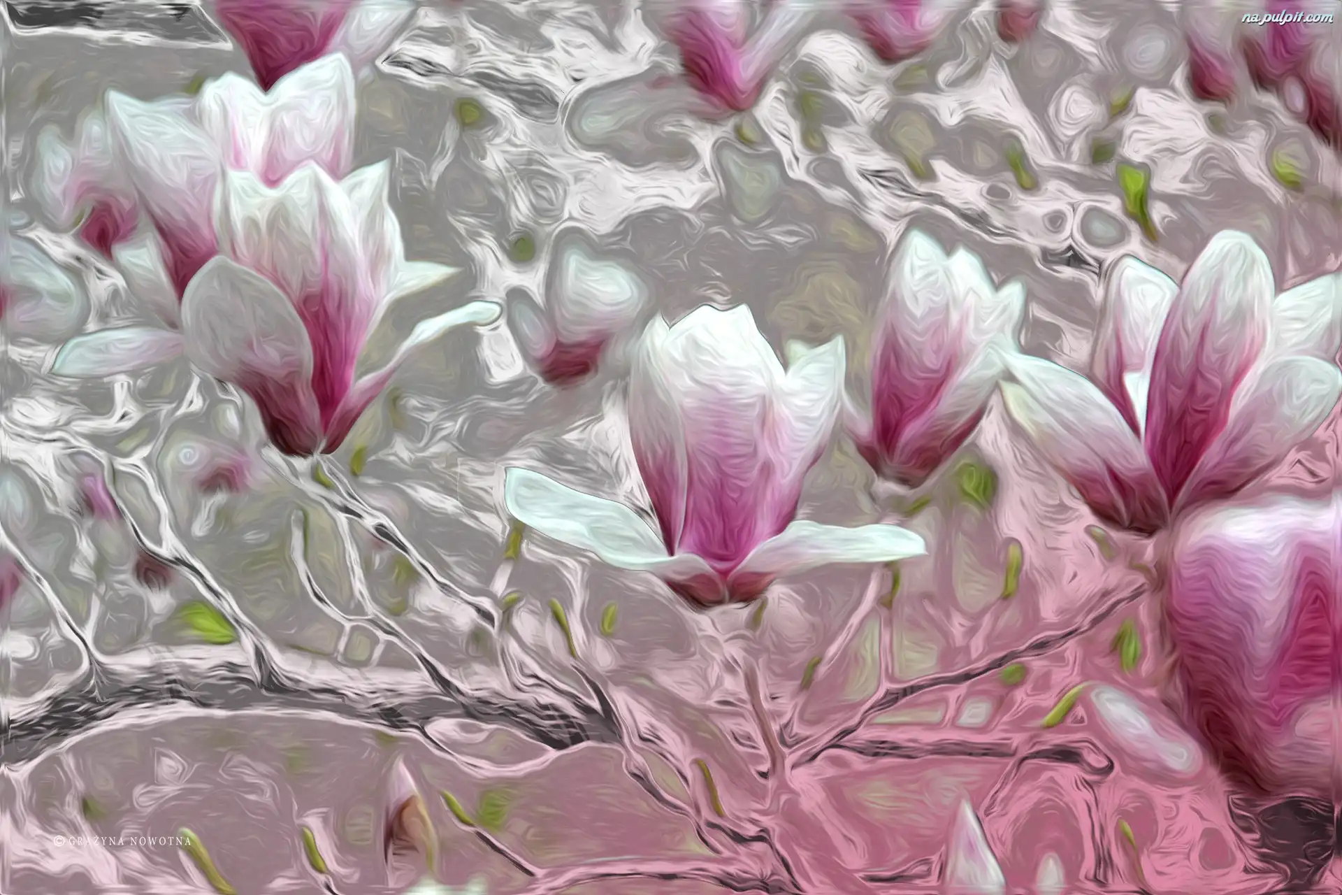 Grafika, Kwiaty, Magnolie, Krzew Na Pulpit