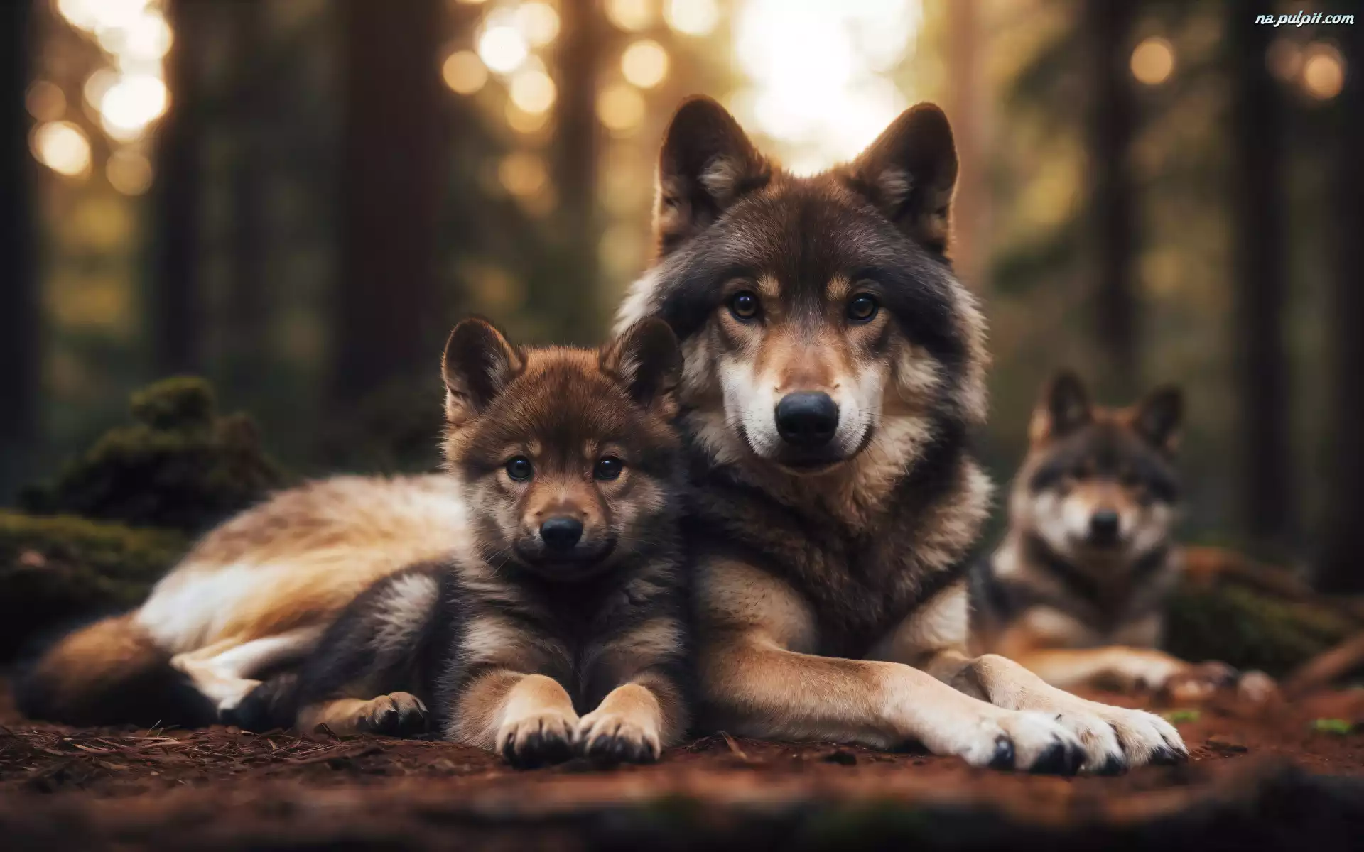 Wilczki, Wilki, Wilczyca, Grafika AI, Młode Na Pulpit