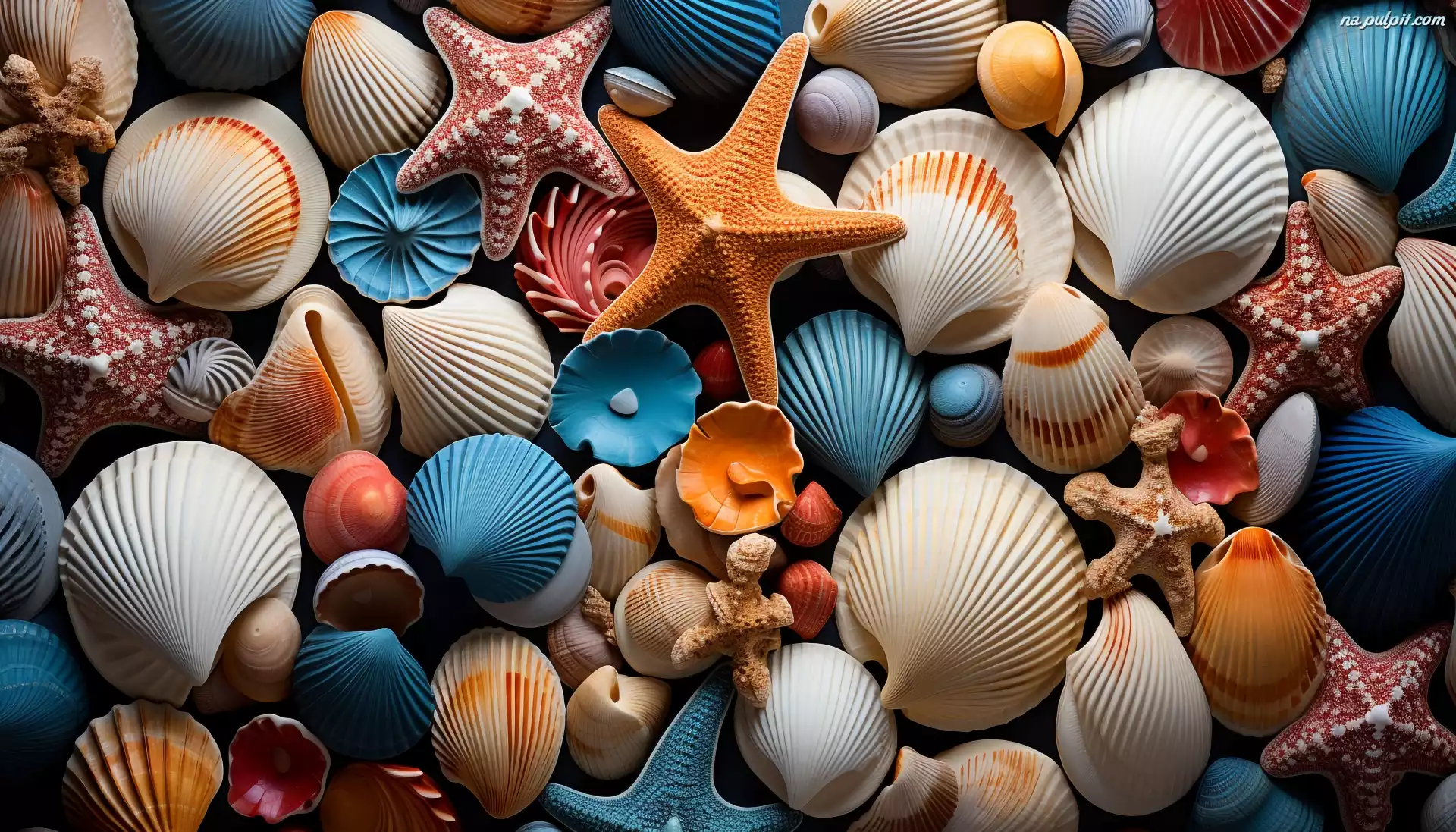 Muszelki, Kolorowe, Rozgwiazdy, Grafika Na Pulpit