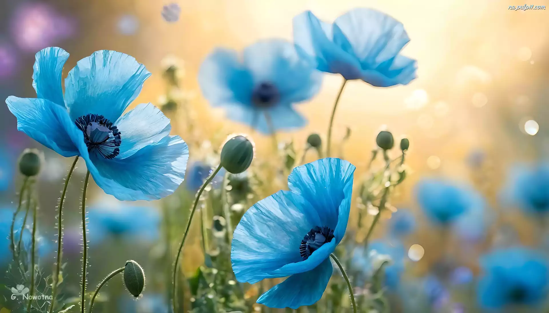 Niebieskie, Maki, Kwiaty, Grafika Na Pulpit