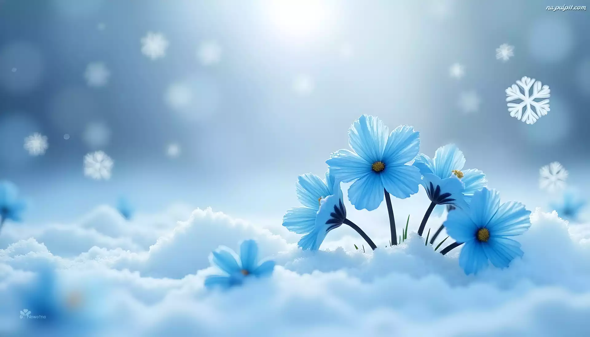 Niebieskie, Kwiaty, Śnieg, Grafika Na Pulpit