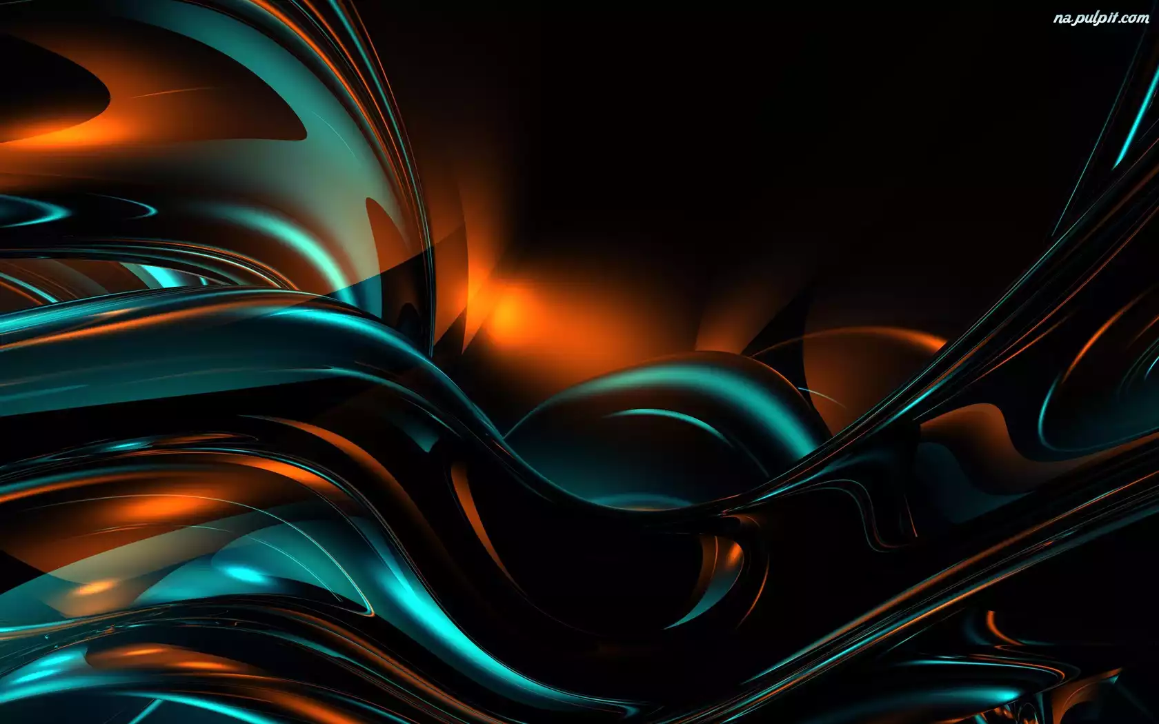 Grafika, Pomarańczowa, Niebiesko, Abstrakcja Na Pulpit