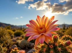 Słońce, Kaktus, Kwiat, Grafika AI, Niebo