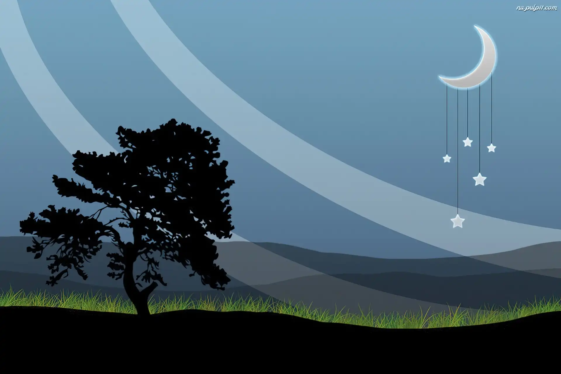Grafika, Drzewo, Noc, Trawa Na Pulpit