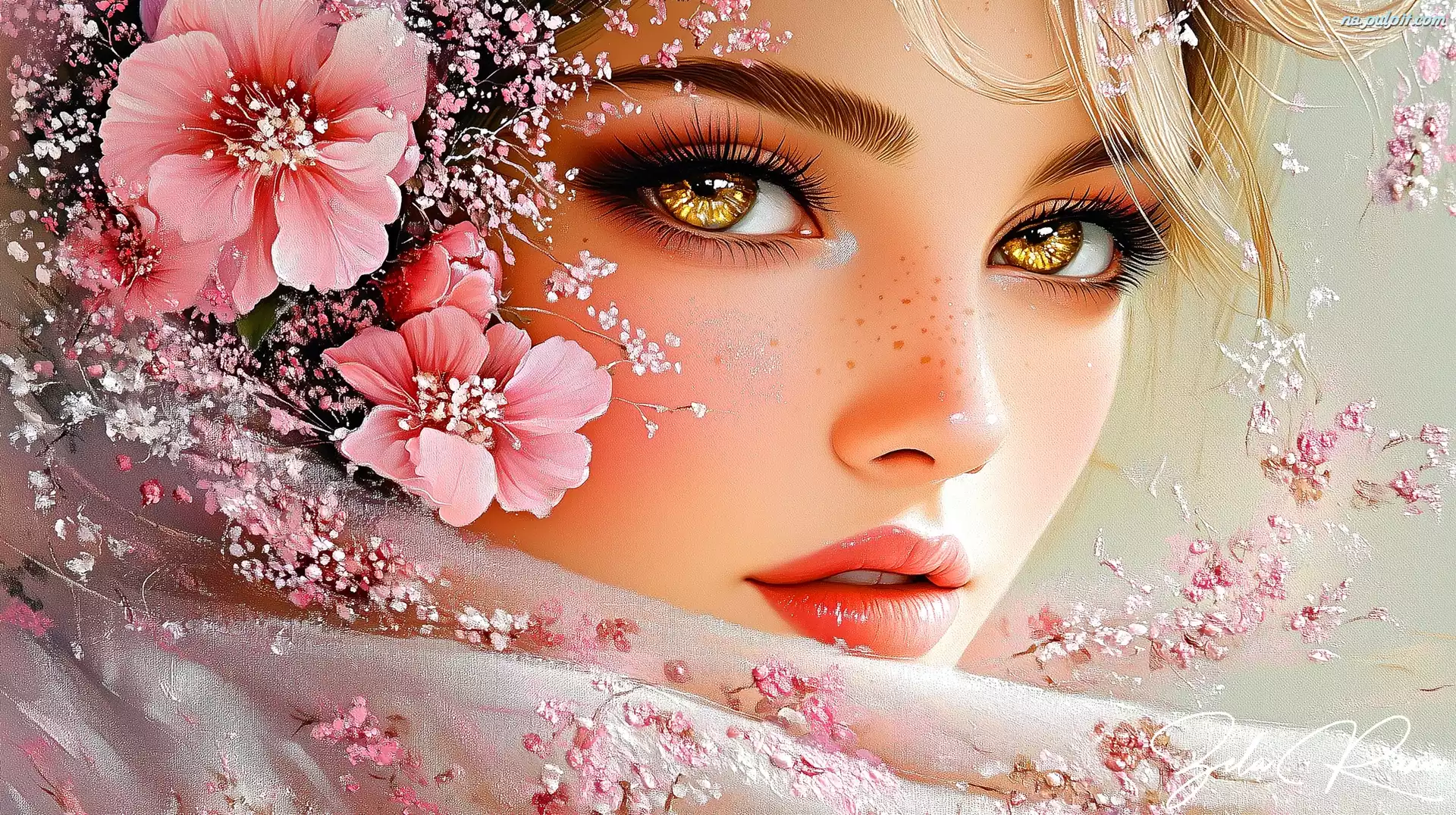 Kwiaty, Kobieta, Piwne, Grafika AI, Oczy Na Pulpit