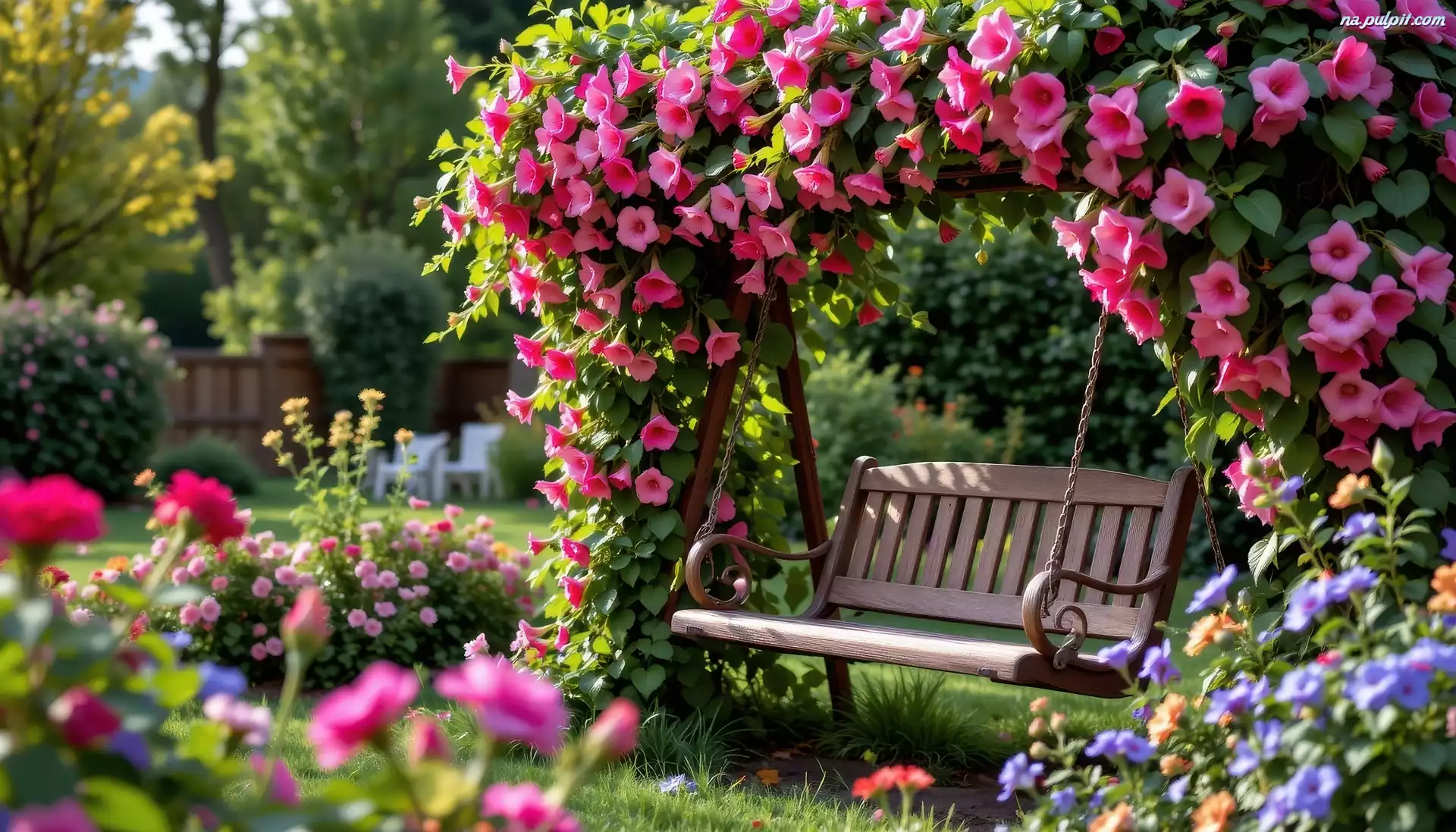 Ogród, Ławka, Kwiaty, Grafika Na Pulpit