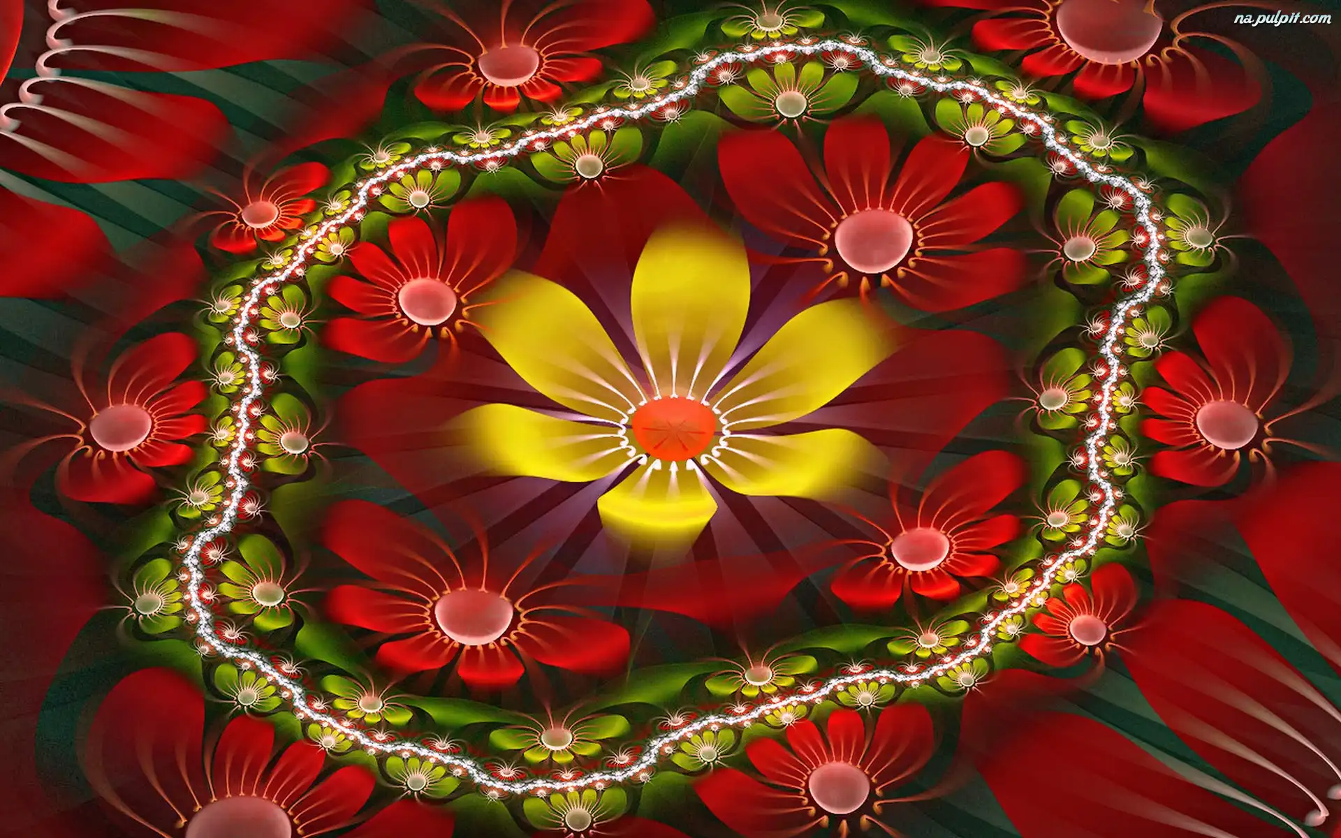 Grafika, Czerwone, Żółte, Kwiaty Na Pulpit