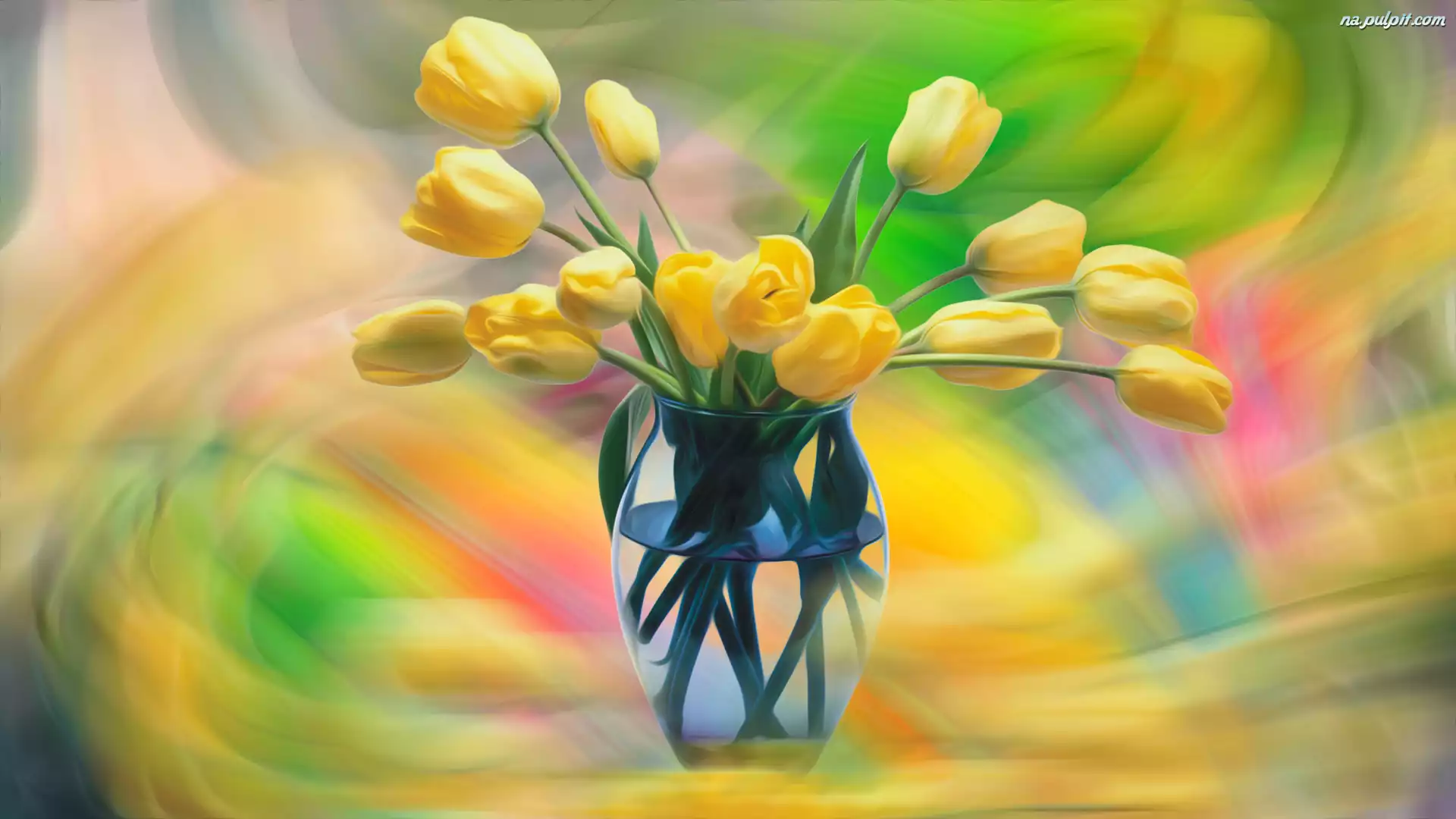 Grafika, Szklany, Tulipany, Żółte, Wazon Na Pulpit