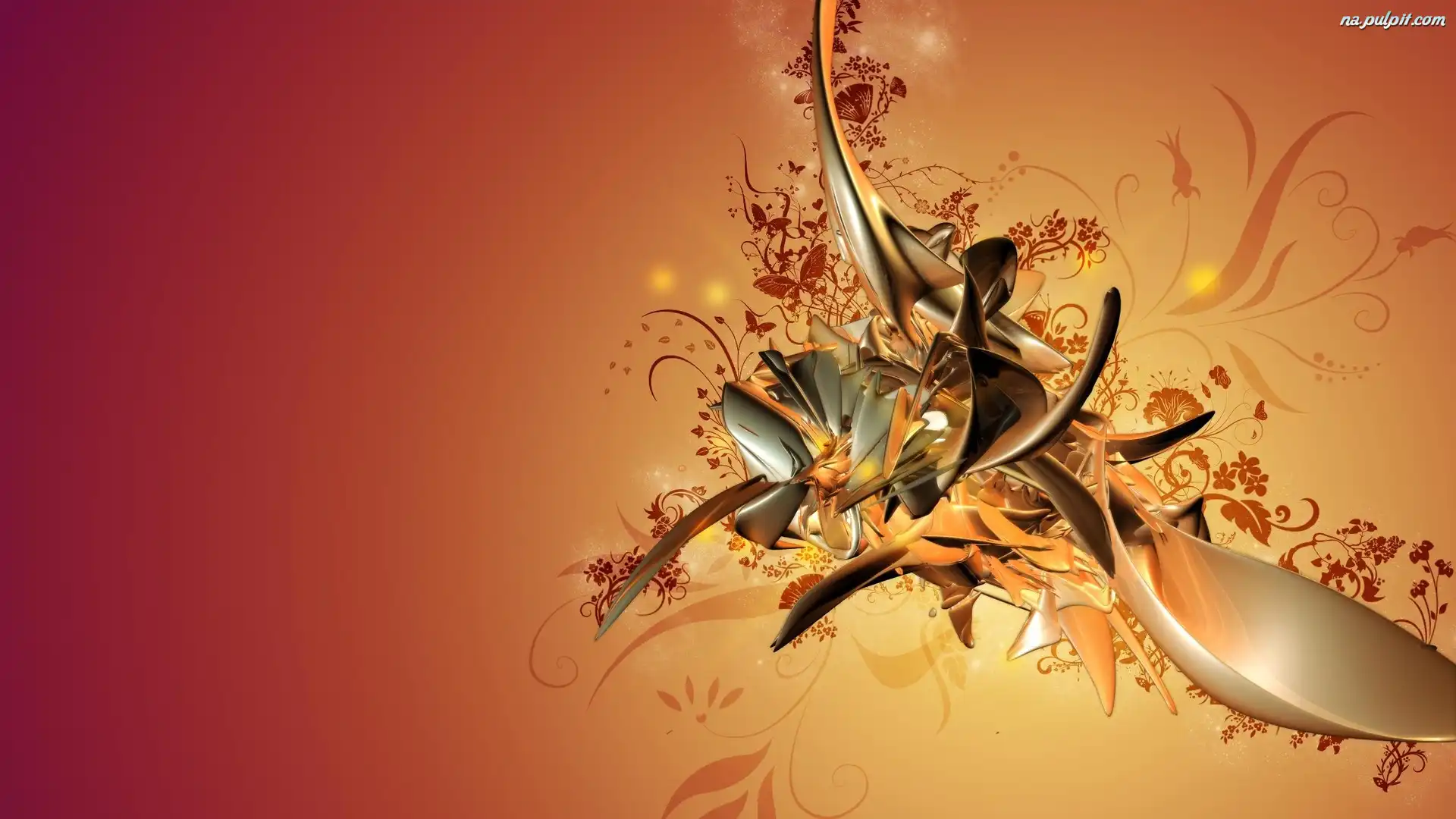 Grafika, Kwiaty, Oranż, Motyle Na Pulpit