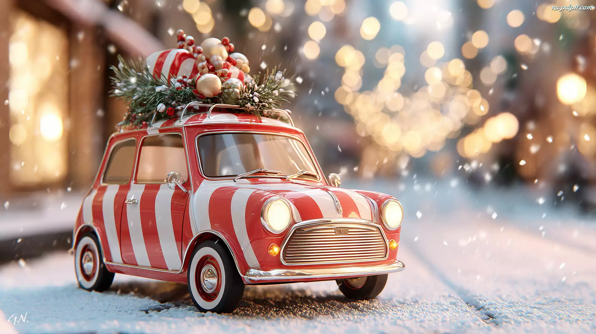 Zima, Świąteczne, Samochód, Grafika AI, Ozdoby Na Pulpit